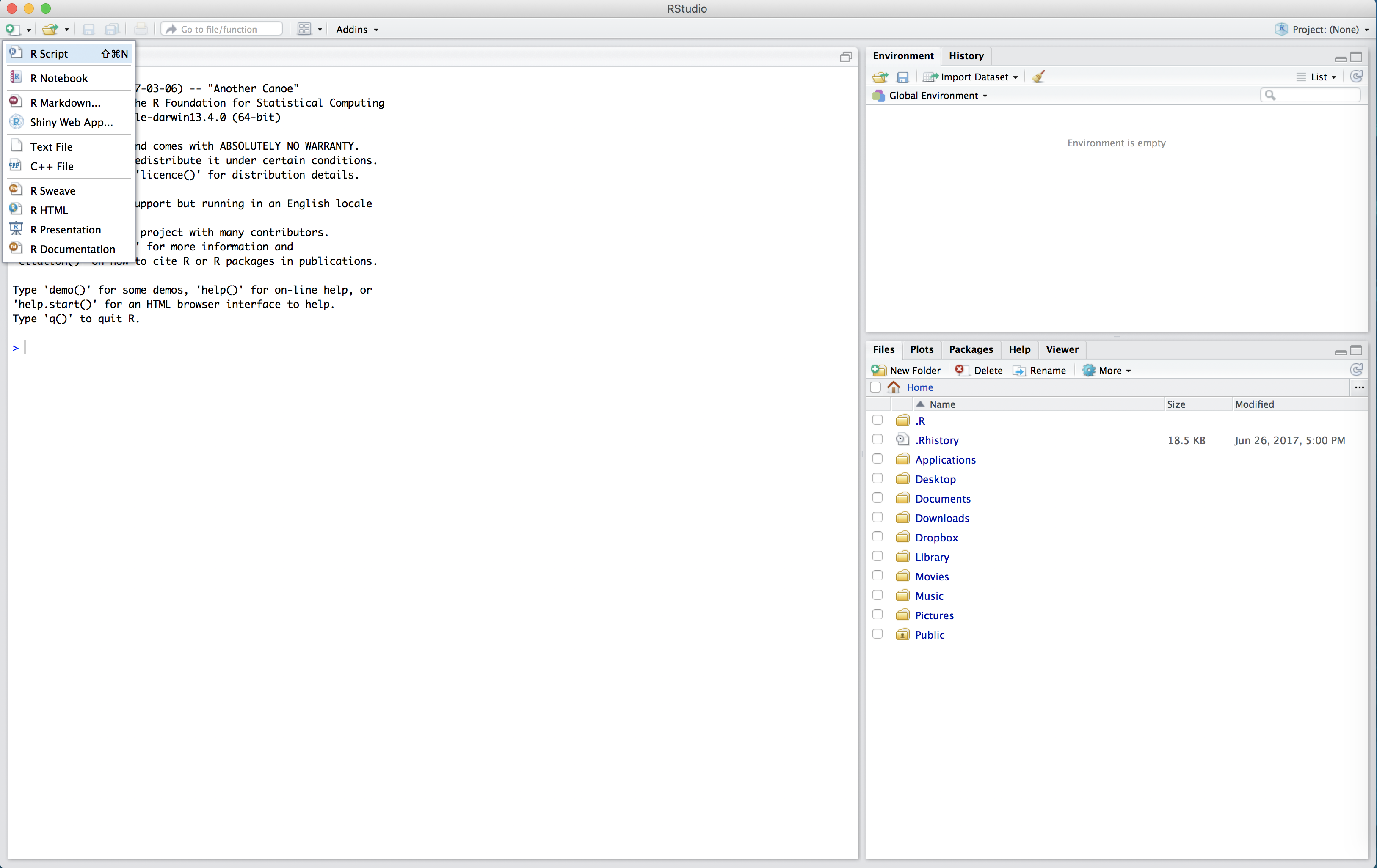 we’ll open RStudio and look at the console pane. We can also check our