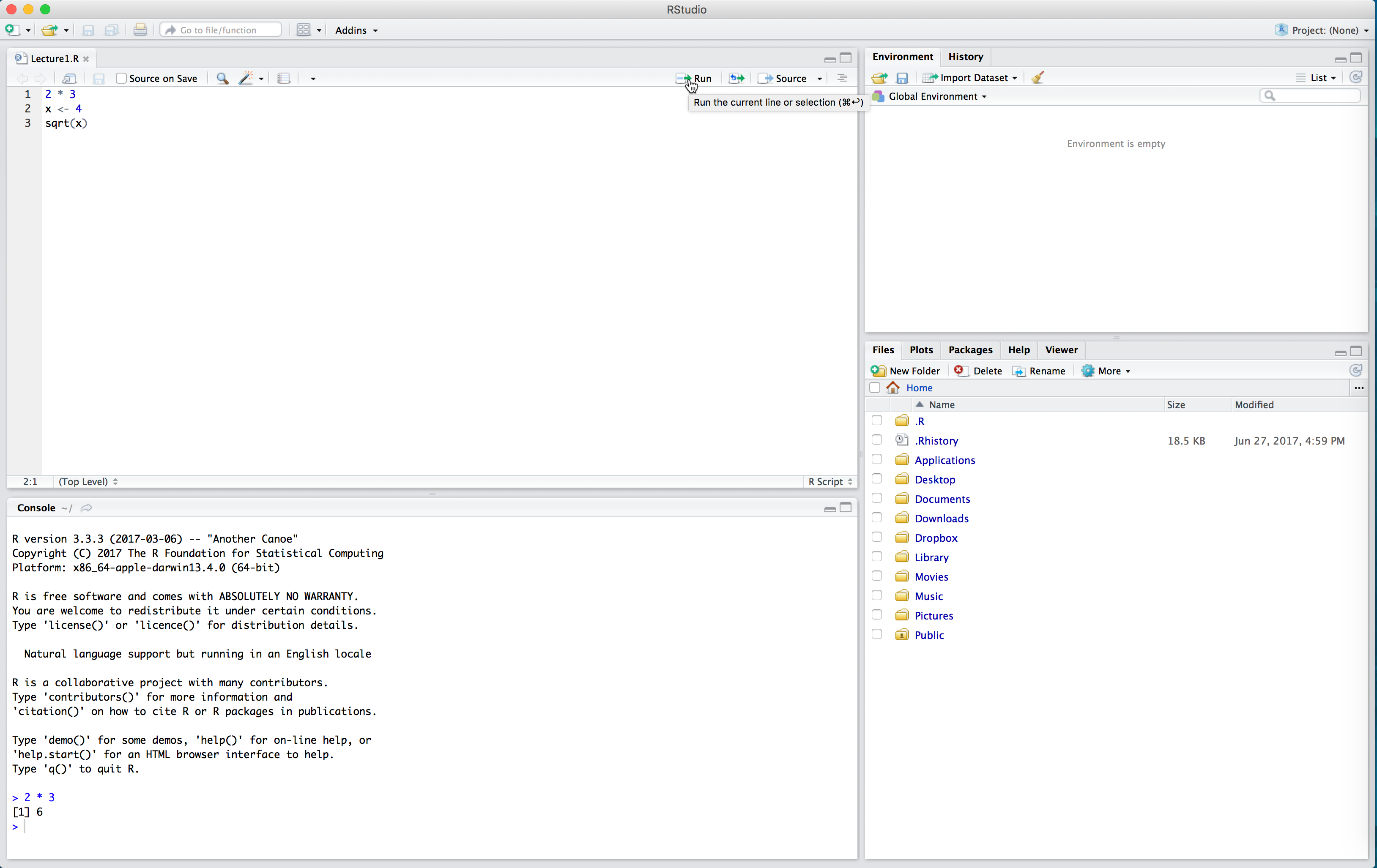 Now our code is just sitting in the R Script. To run the code (that