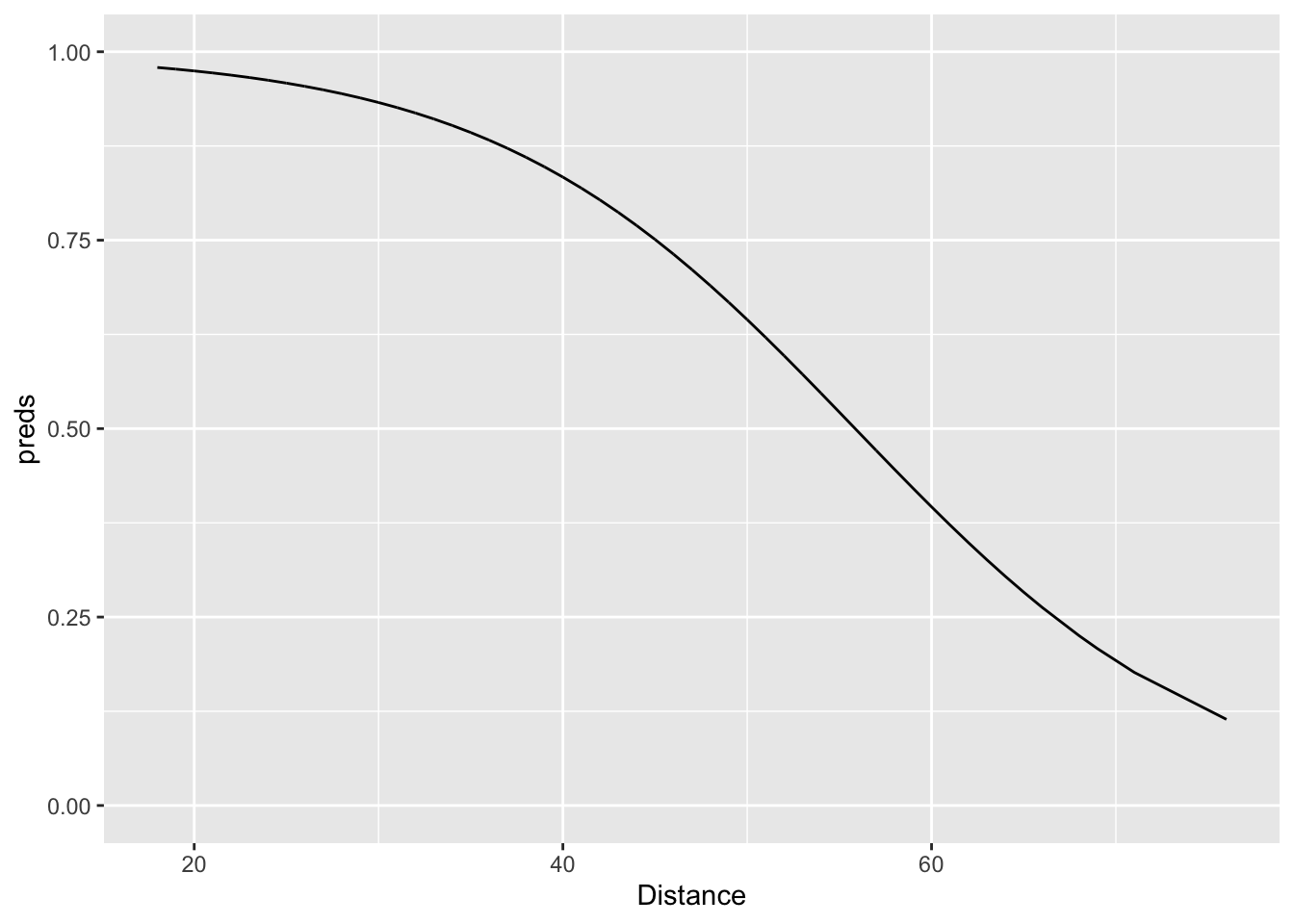 geom_line(mapping = aes(x = Distance, y = preds)) +